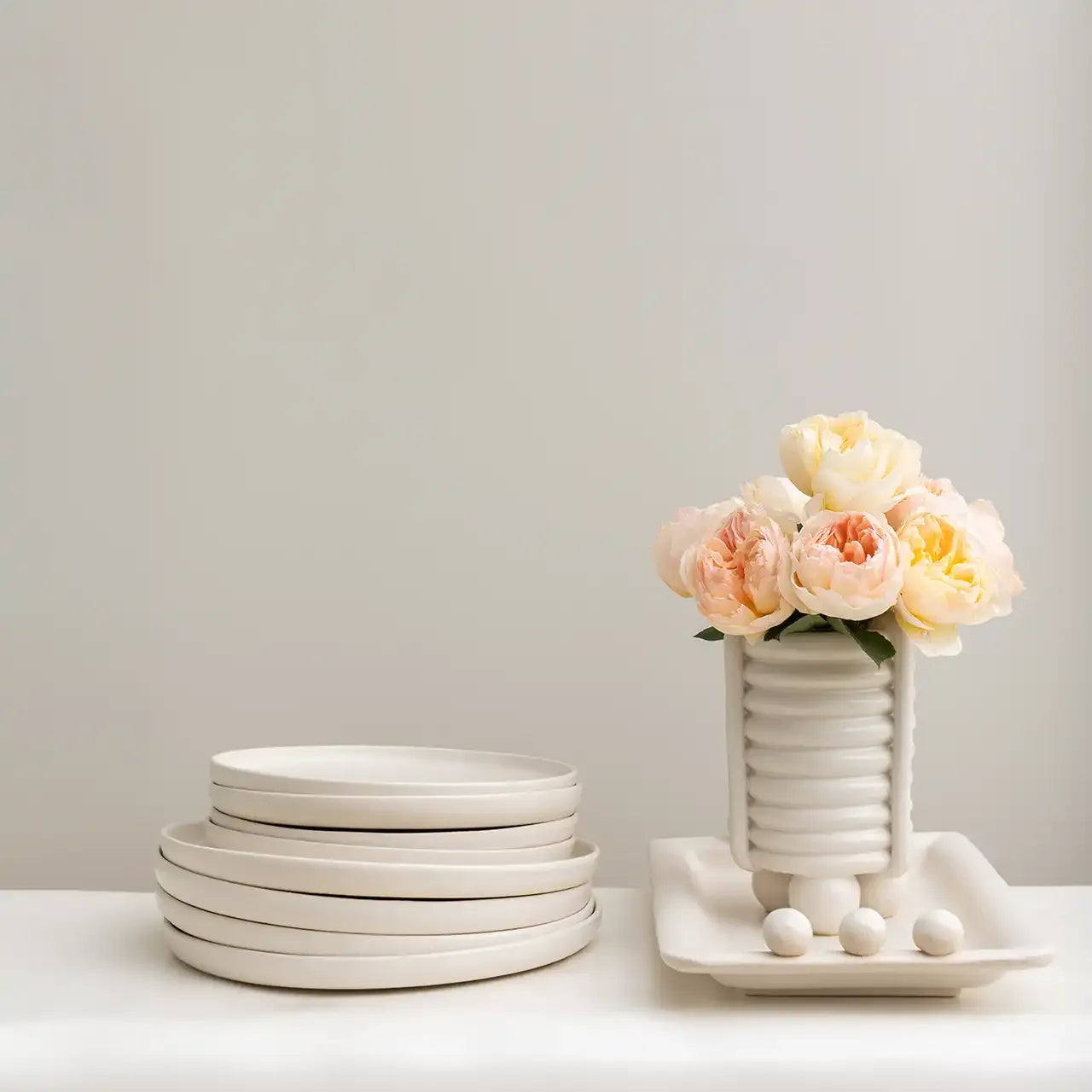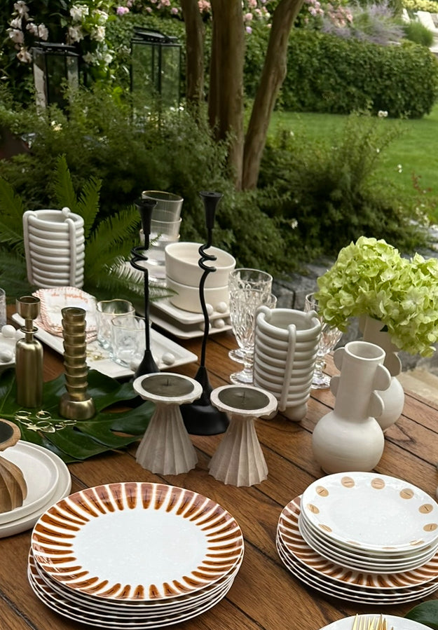 Crafted of clay coils set atop of a trio of balls, the HIGH ROLLER’s standout silhouette is striking with or without florals. It’s the perfect centerpiece for any REVELRY tablescape, but is equally stunning on a coffee table, console or bookshelf.