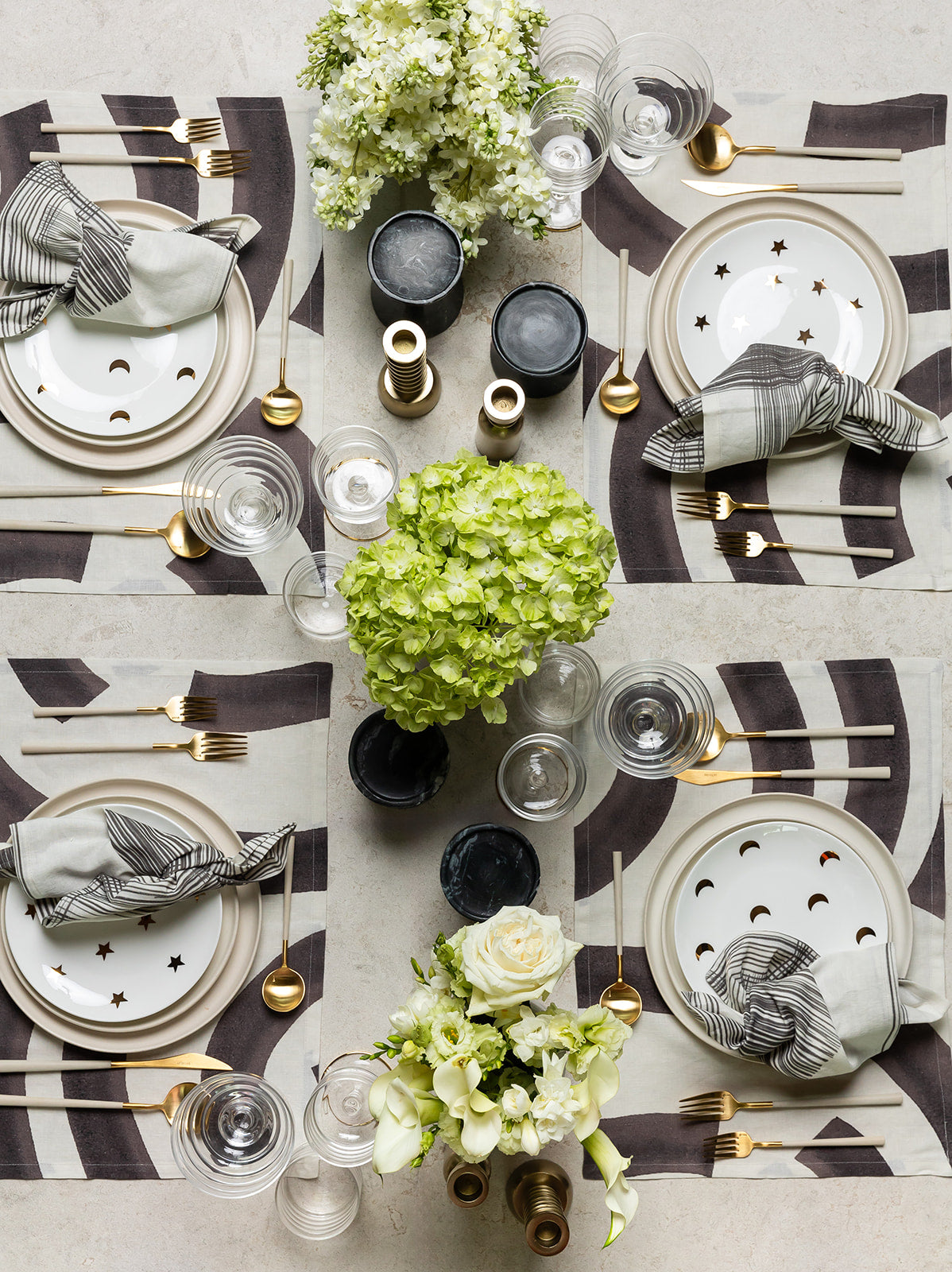 Not your average white dish, this bone china accent plate is adorned with gold moon decals as a nod to Purvi’s love of astrology and adds a wink of charm to the table. Pairs perfectly with every REVELRY collection. Set of four.