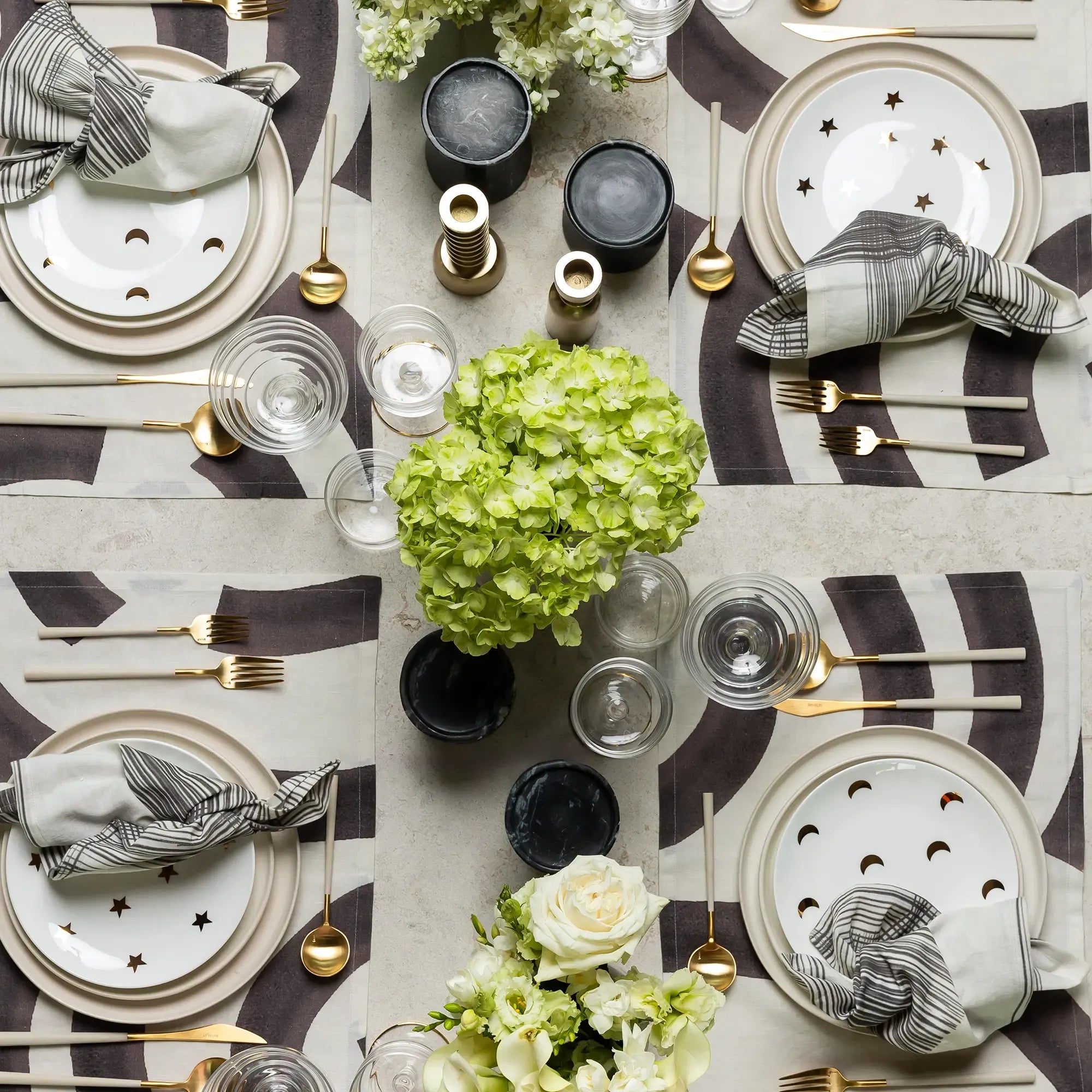Inspired by bold patterns and weighty materials, Hard Rock plays off the pairing of light and dark for a striking tabletop brimming with luxe materials of marble, gold and fluted glass. A conversation starter and an effortless statement of style designed for moments that call for a little extra polish.