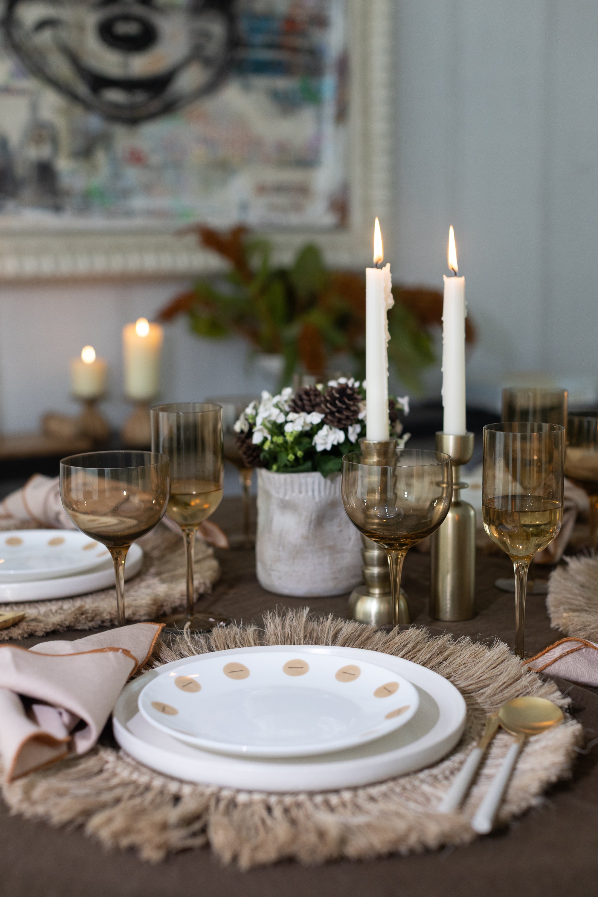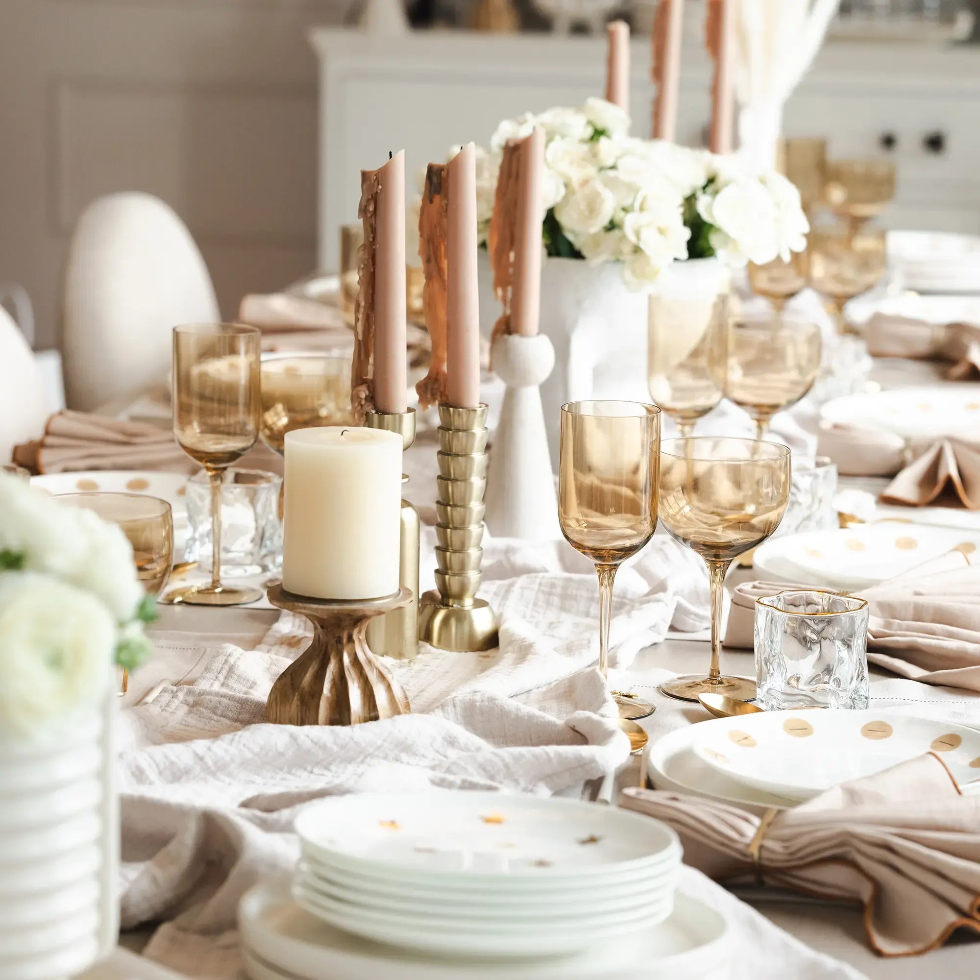 Delicate, feminine tones enveloped in warmth. A marriage of ethereal and grounded - stone, porcelain, glass and gilded accents work in perfect harmony.