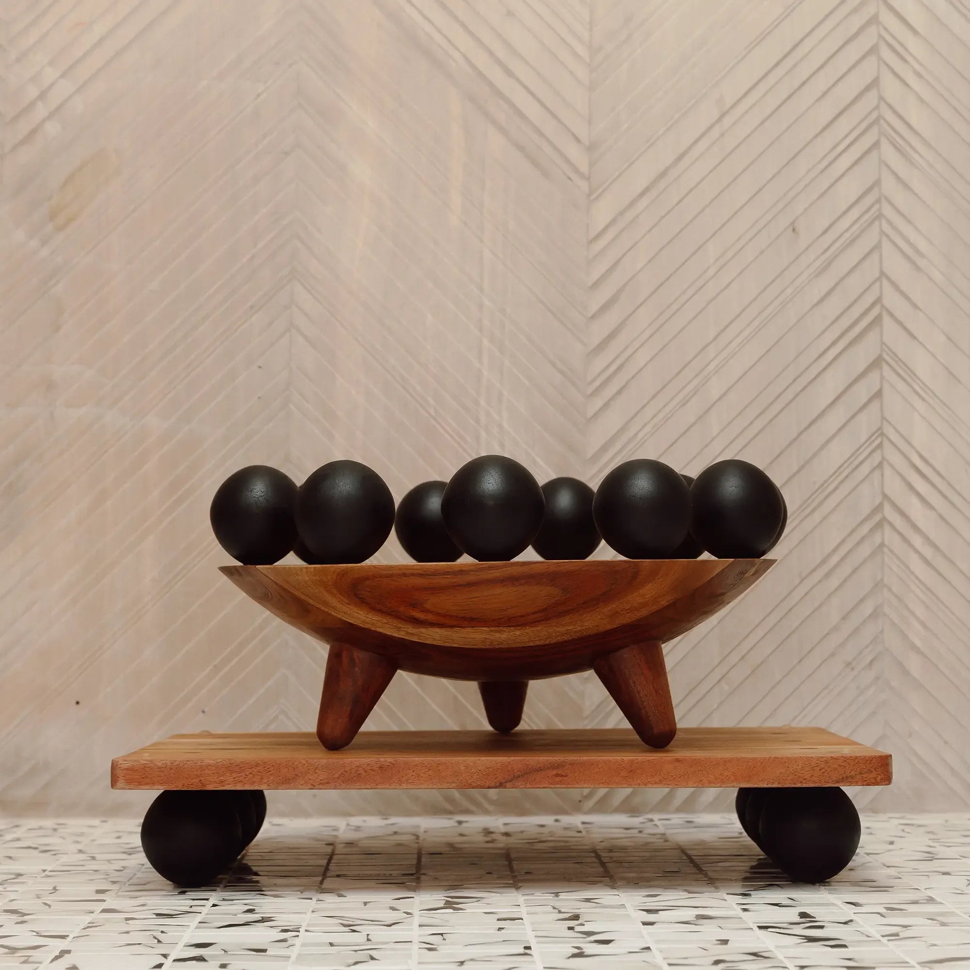 Our signature statement spheres atop a wooden board. Use it to serve cheese or drinks, put it under a vase, on top of a stack of books or turn it over for a little lift.